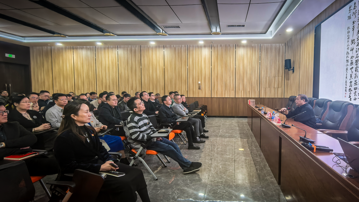 为强化对党员干部的教育管理,进一步引导党员干部树牢初心使命意识、筑牢理想信仰根基、激发干事创业热情。2025年11月21日下午,集团公司特邀原解放军艺术学院副院长、教授朱向前同志主讲《中国革命胜利的选择——毛泽东与遵义会议》专题党课。集团公司在家班子成员、中层管理人员及各党支部支委成员共约120余人参加学习。